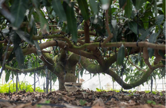 マンゴーは「表年」「裏年」で生産量に差があり、あけのフルーツでも安定した農園経営に難しさを抱えていました。現在は経営管理、流通販売面等のバックヤードは泉州屋が全面支援をしています。安定的な給与体系が社員のモチベーション向上、後継者育成につながり、あけのフルーツはマンゴー生産に注力してもらうことができています。農園のメンバーは以前と変わらずそのまま生産に携わり、生産リーダーをあけのフルーツの圃場の責任者としていることが、地域に対しての安心感にもつながっています。泉州屋グループとなった当初はマンゴーの改植中で、生産量が2019年は3.6t/年と減少していましたが、2021年は6t/年までに回復しました。2027年には12t/年の収穫量を見込んでいます。